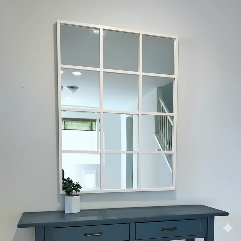 - Classic grid mirror design enhances light and space in any room
